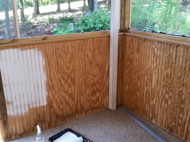 Progress pic – but it’s done now, looks so much nicer. Painted a nice cream white. Will replace the old carpet with grey flooring of an undetermined, weather-resistant type. Now I can actually use this room for some outdoor storage. Nothing major, because you know, thieves and meth-heads.