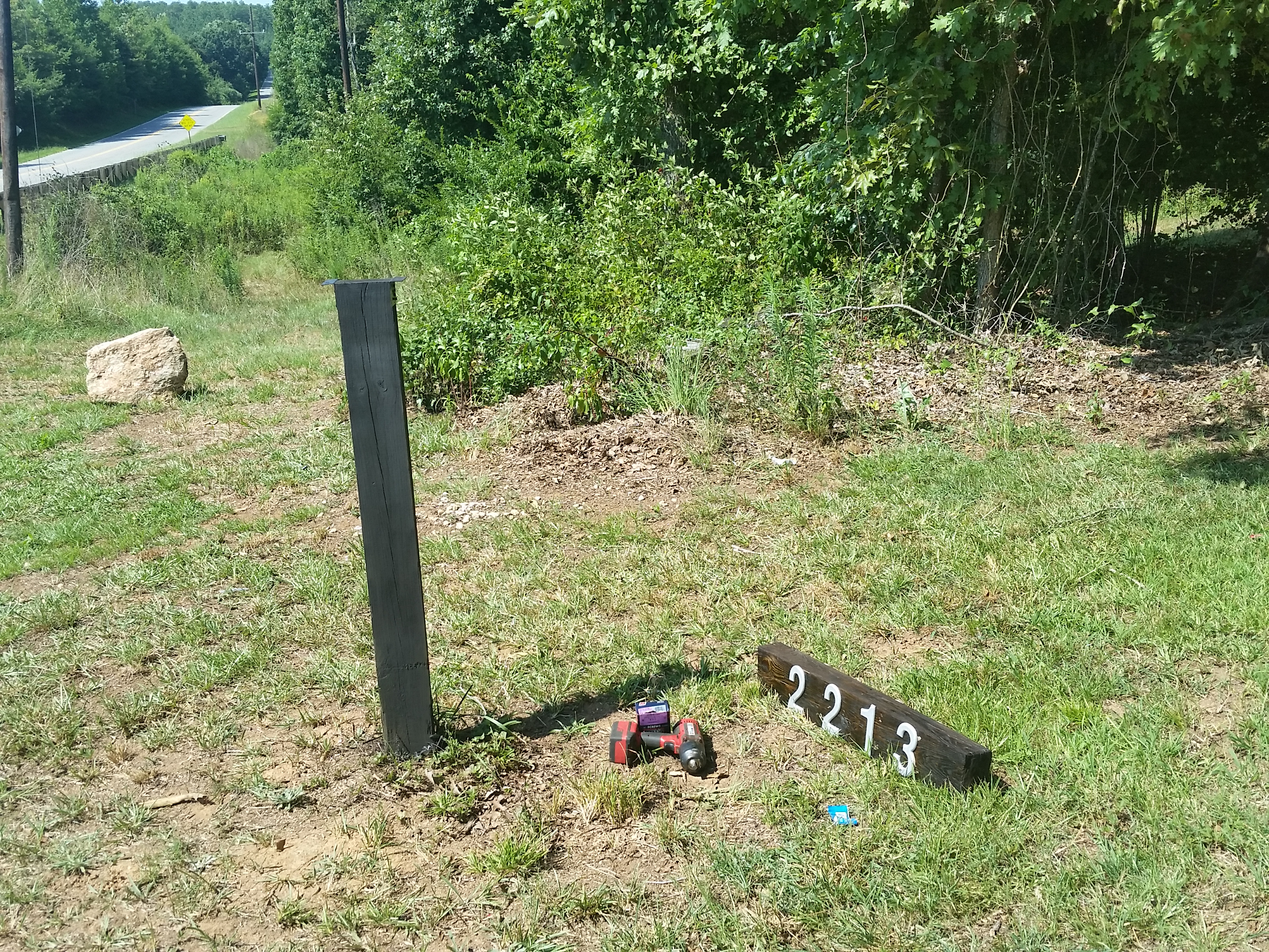 Smaller projects – tore down the ugly number post at the end of the drive. Powerwashed the post, new numbers and a lot of poly coat later we’ve got a nice post now.
