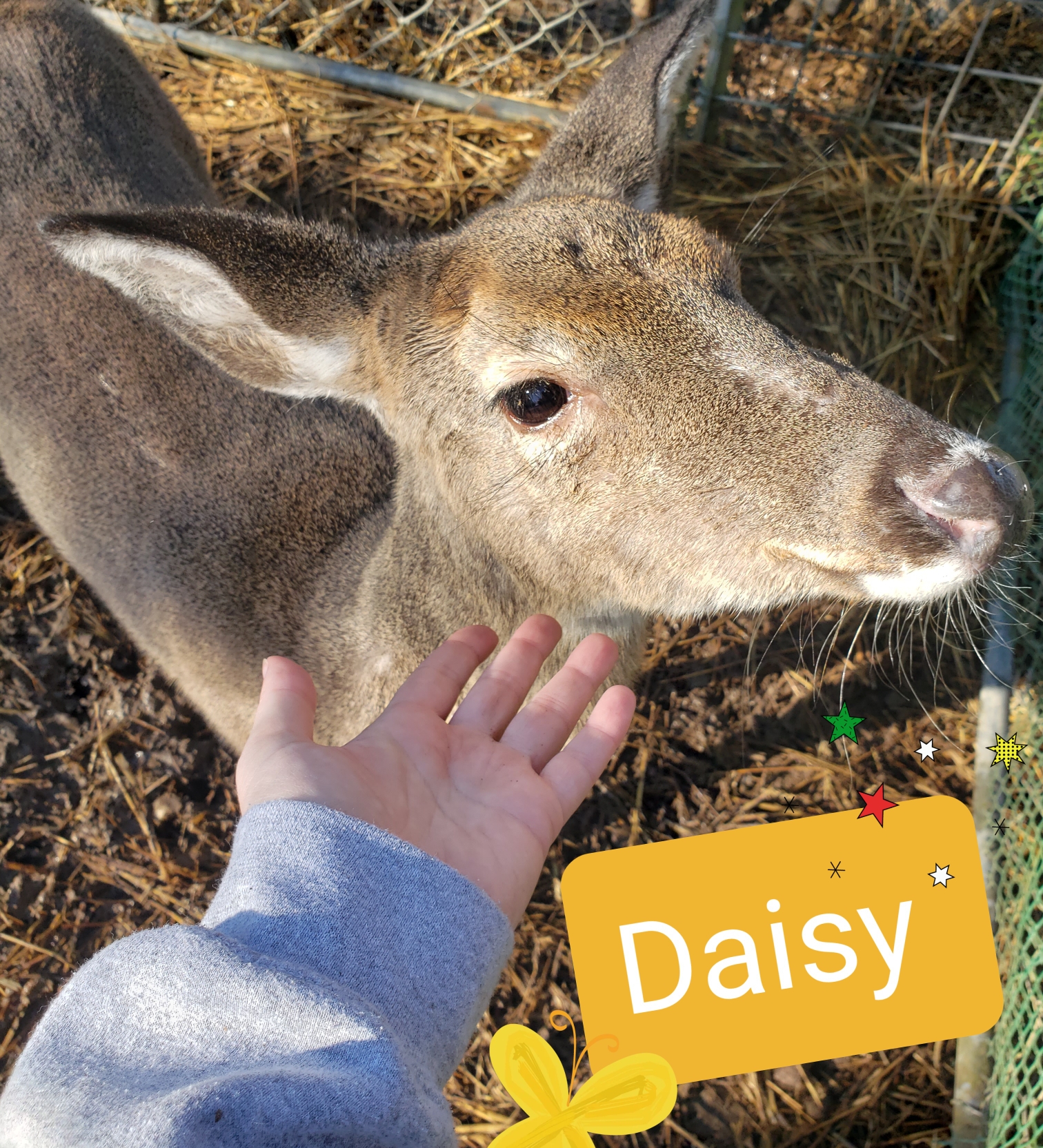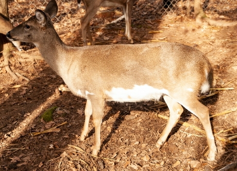 Sally is the sweetest girl. She had been illegally raised as a pet deer and we got a call from SCDNR to pick her up. We get this call a lot when a friendly “pet” deer finds its way to a neighborhood with children. It can be dangerous for the deer and the children.