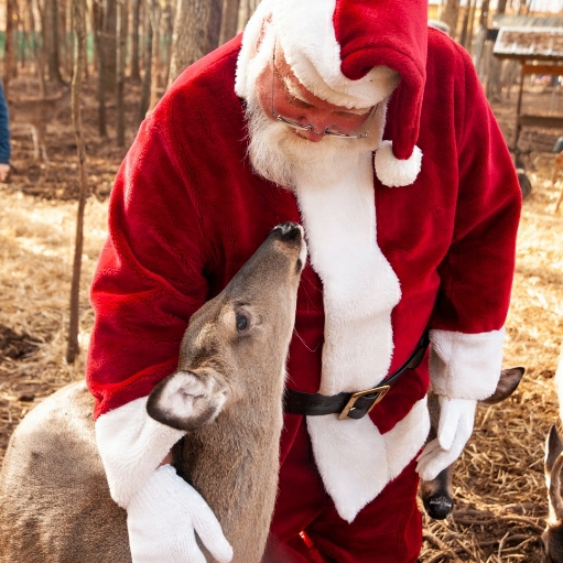 Rudolph’s Story: He showed up at someone home last Christmas. He went up to their very young son and was pushed his antlers towards him. He was wanting to be pet but at the same time beginning the rut and rubbing his sharp antlers onto everything. This is a very dangerous time for young pet bucks. They have no fear of humans and are losing their velvet and will gore anything they can because of raging hormones. No one ever claimed to have raised him but I am sure his behavior scared them enough to set him free. But this could have ended very badly, the boy could have been hurt or killed and SCDNR would have had to shoot Rudolph. Thankfully we were called and he was neutered to calm the hormones. Now he is safe and so is the public. Without the hormones, he is a sweet boy.